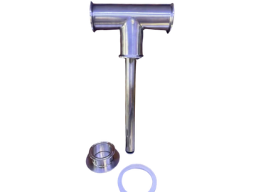 Stainless steel infusion tee with mason jar adapter and gasket. No clamps included.