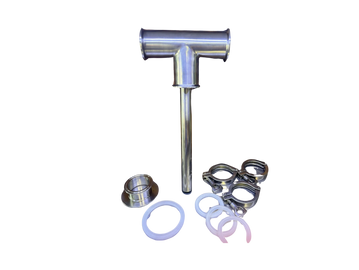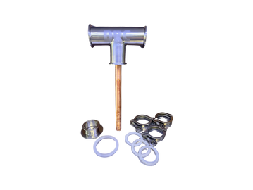 Stainless steel infusion tee, copper down pipe with mason jar adapter, 3 clamps and gaskets included.